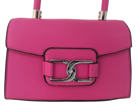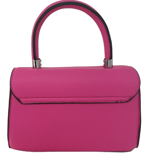 Bolso de mano fucsia con diseño estructurado y cierre metálico frontal, ideal para dar un toque sofisticado y vibrante a cualquier look.