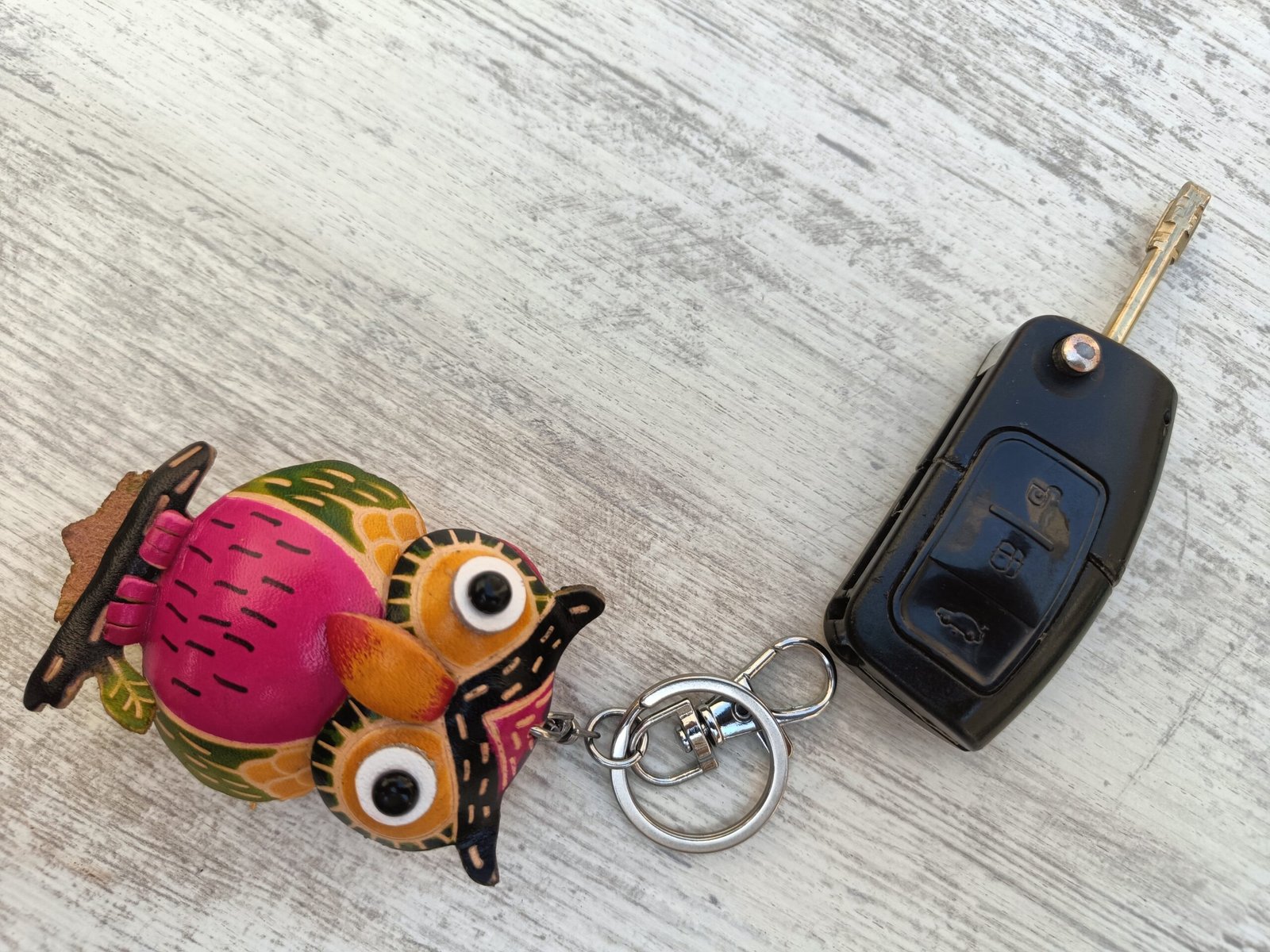 Llavero artesanal en forma de búho de la suerte 🍀 de colores vibrantes, pintado a mano para darle un toque único y divertido a tus llaves o bolso.